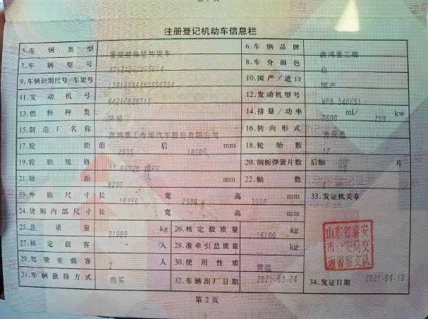 21年4月重汽豪沃金標 精品21年4月,停用9個月,強險到23年9月金標唐鴻重工 濰柴340 動力 車長10350 大14拉17方,營運檔齊全!