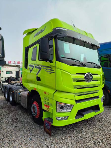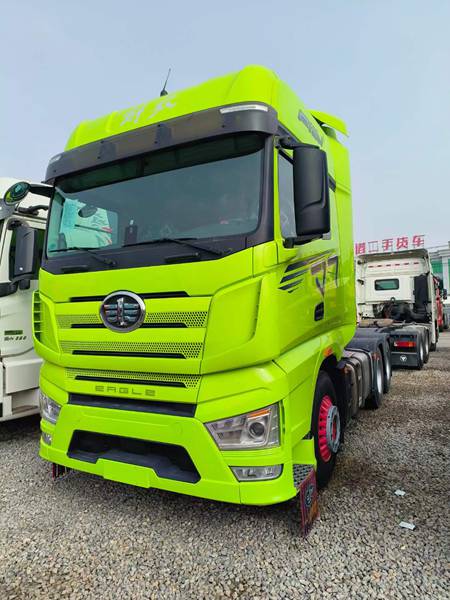 新到梁山華通二手車市場一臺二手解放J7 560馬力牽引車, 22年3月560嫩芽綠解放J7牽引車, 全車輪胎九成新,車況極品 ,伊頓自動擋 ,帶原車液緩,個人一手車,隨時提檔,買精品二手J7牽引車來梁山華通二手車市場