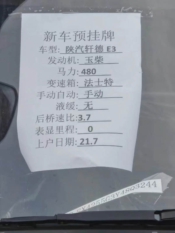 21年7月陜汽軒德E3,玉財(cái)12升480馬力,法士特手動12速,漢德后橋,速比3.7,全國提檔支持分期付款