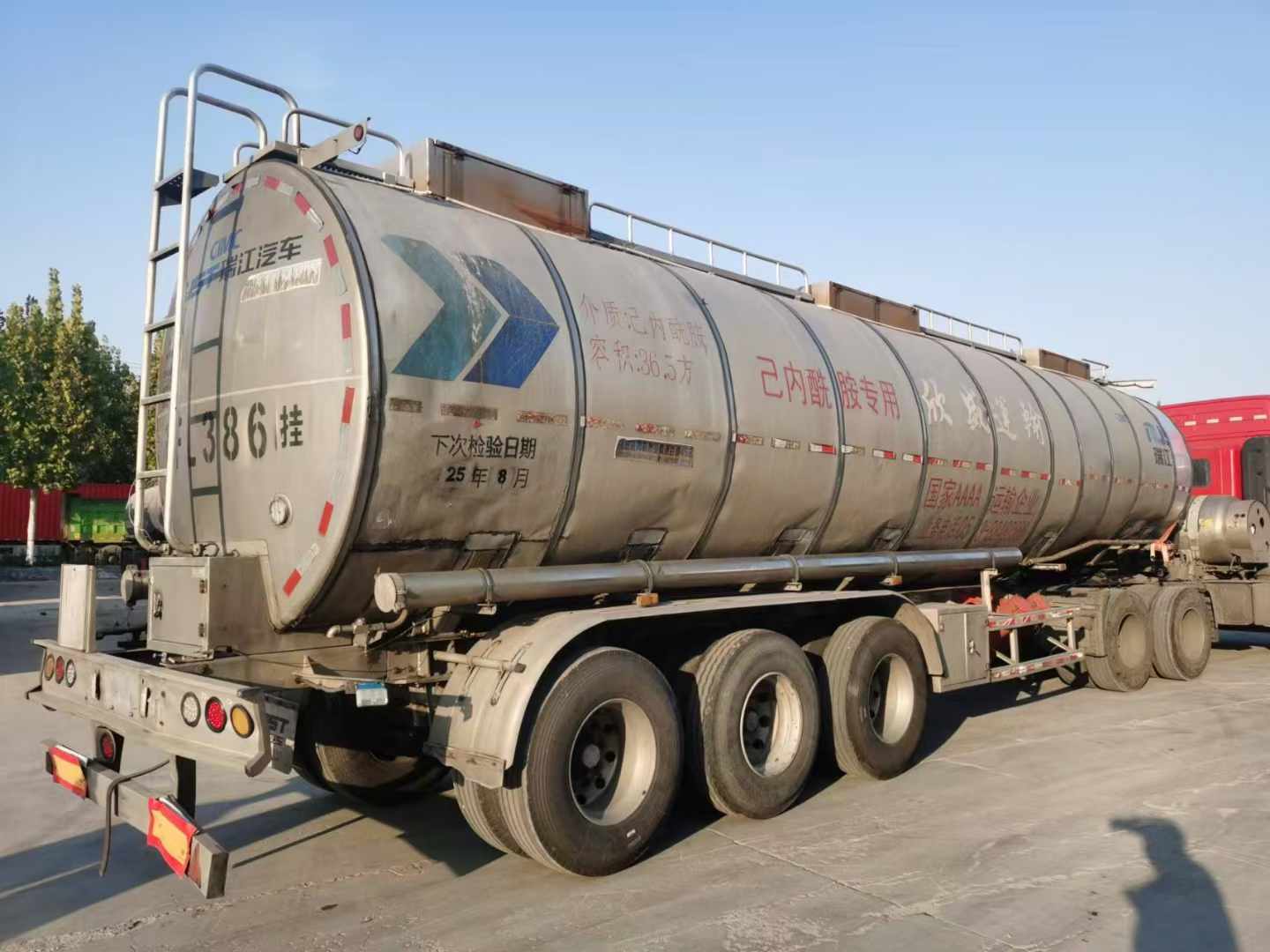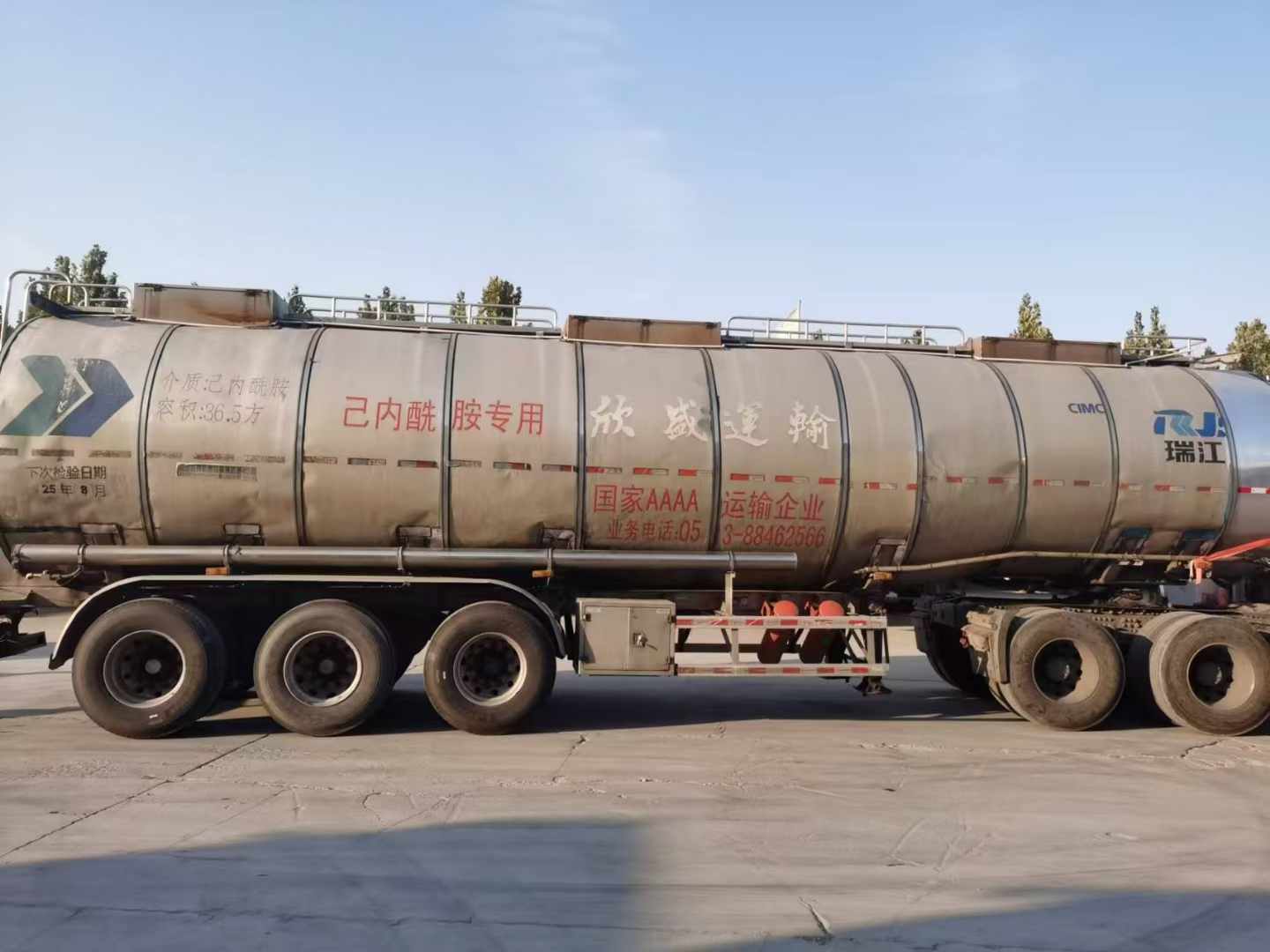梁山二手車市場內中集瑞江鋁合金保溫罐,公告36.5方,17年12月出廠,瑞江專用橋3個鋼圈9個鋁圈,,輪胎七成新。介質:食用油。有需要二手鋁合金保溫罐的可以來選購。